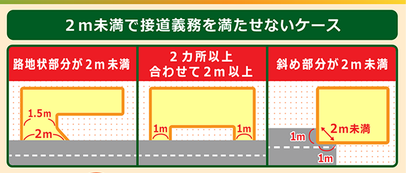 【このような場合は接道義務を満たしておりません。】