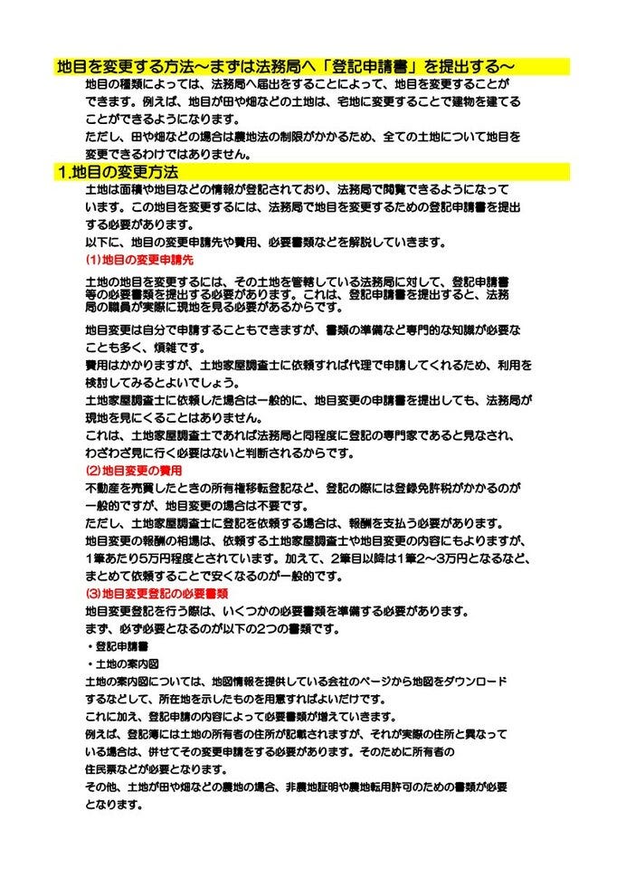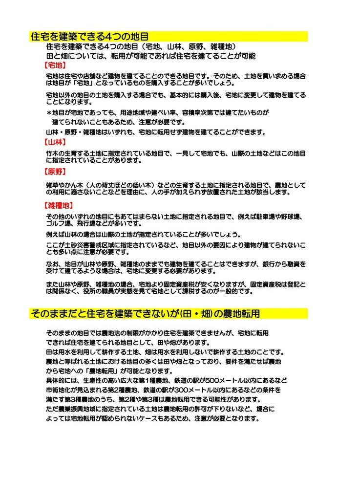 お家を建設するうえで「道路」と「地目」を調べないと建てれるかどうかがわかりません。前回は「道路」のご説明させて頂きましたが今回は「地目」についてご紹介させて頂きます。