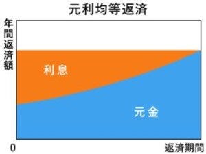 元利均等返済と元金均等返済と言われます。ここでは元利均等返済を