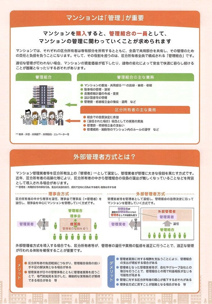 マンションを買ったらあなたもマンション管理の担い手です!とのことです。国土交通省が出されている資料がありましたので掲載します。御参考ください。