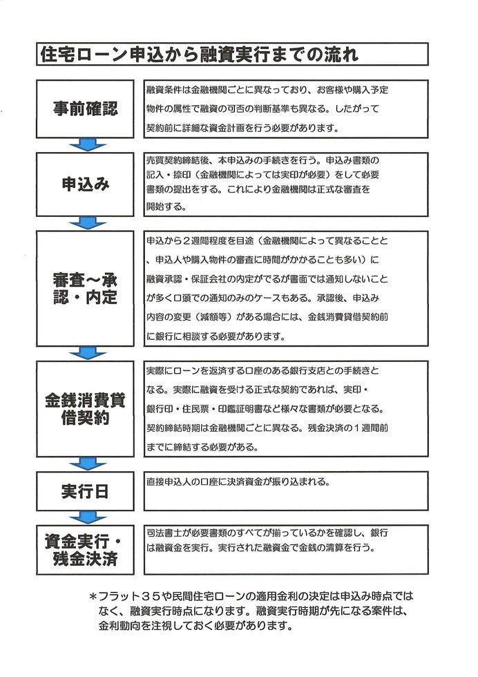 住宅ローン申込みから融資実行までの流れです。お家をご購入の際はハウスドゥ倉敷駅東へご来店ください。