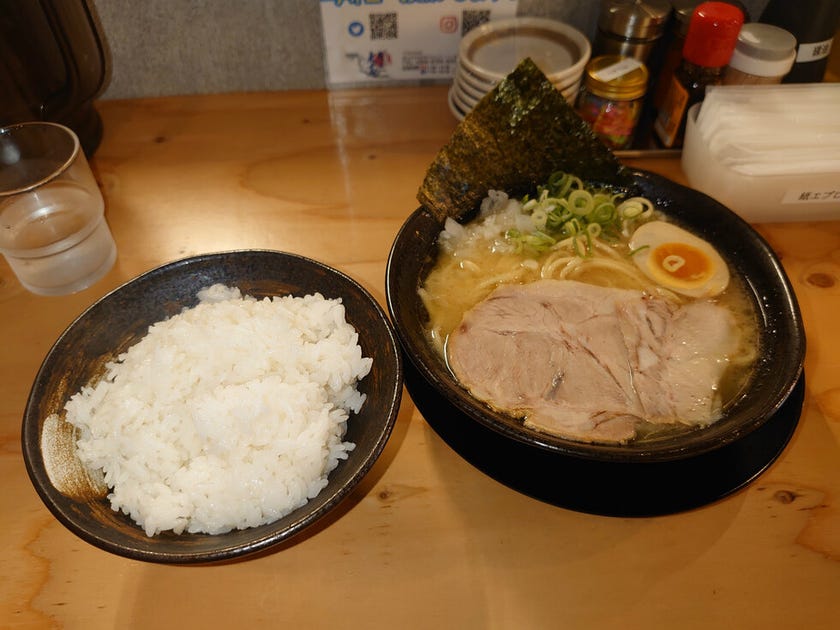 細麺or中太麺を選択可能ということで、今回は濃厚豚骨ラーメン(醤油)·中太麺をたのみました!