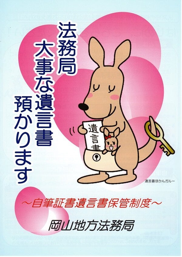 謄本をもらいに法務局へ行ってきました。市役所や法務局へ行くとついつい目につくのが陳列しているパンフレットやカタログです。定期的に変えているのか毎回訪問するたびに内容がたまっています。職員のかたは大変だと思います。さて成年後見制度って知ってますか?「認知症、知的障害、精神障害などの理由で判断能力の不十分な方々は、不動産や預貯金などの財産を管理したり、身の回りの世話のために介護などのサービスや施設への入所に関する契約を結んだり遺産分割の協議をしたりする必要があっても自分でこれらのことをするのが難しいばあいがあります。また、自分に不利益な契約であってもよく判断ができずに契約を結んでしまい、悪質商法の被害にあう恐れもあります。このような判断能力の不十分な方々を保護し、支援するのが成年後見制度です。」と冒頭で書かれてます。費用やお問い合わせ先も記載されてます。公的機関なので最初の窓口として色々と質疑するのにはいいと思います。また遺言書も預かってくれるとの事なので一緒にご紹介しておきます。ぜひ一度、倉敷市民の味方「法務局」へ行って問い合わせてみてください。