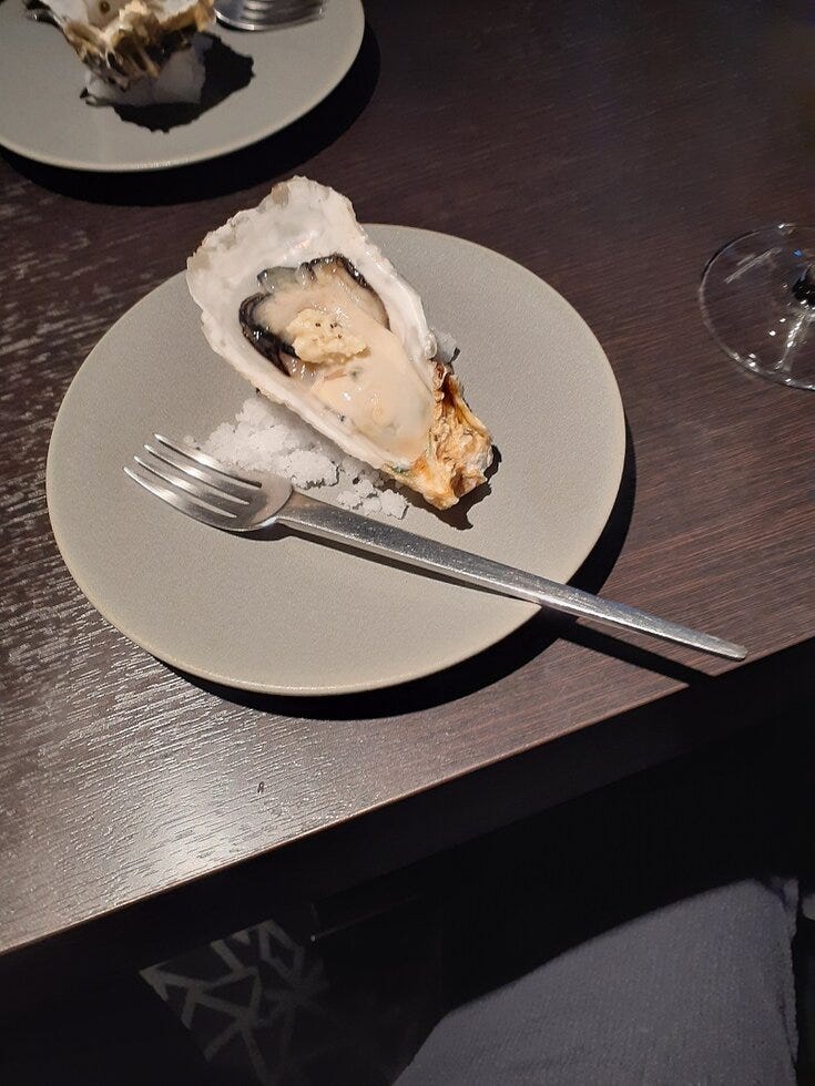 東京研修夜の勉強会はまだまだ終わりませんでした。どうも一緒に行動しているこの人たちは寝ずに次の日の講義を受けるつもりではないかと不安を感じておりましたがそうではなかった。ただ睡眠時間は非常に少なく3時間程度しか寝れず、尚且つ朝は会場まで東京メトロの満員電車で苦しいし眠たいし「駅について降りれなくなったらどうしよう」と心配になるし・・・。それはさておき別のお店で銀座のお店で食べた生ガキを食べて次に西麻布のお店でワインとお肉食べてと飲み歩き。タクシー移動で場所も良くわからなかったので説明しようがないのですがどちらもいいお店でした。結局締めのラーメンまで入れて8件飲み歩き有意義な時間を過ごしました。明日も頑張るゾ!!と