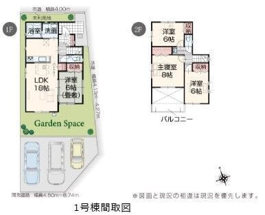 南向きガーデンスペース&カースペース3台分(車種・駐車方法による)付き新築戸建♪